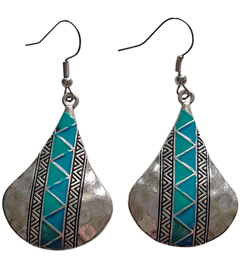 Zielone i turkusowe trójkąty przypominają o chłodzie palmowego cienia i oddechu powietrza tuż po zachodzie słońca.