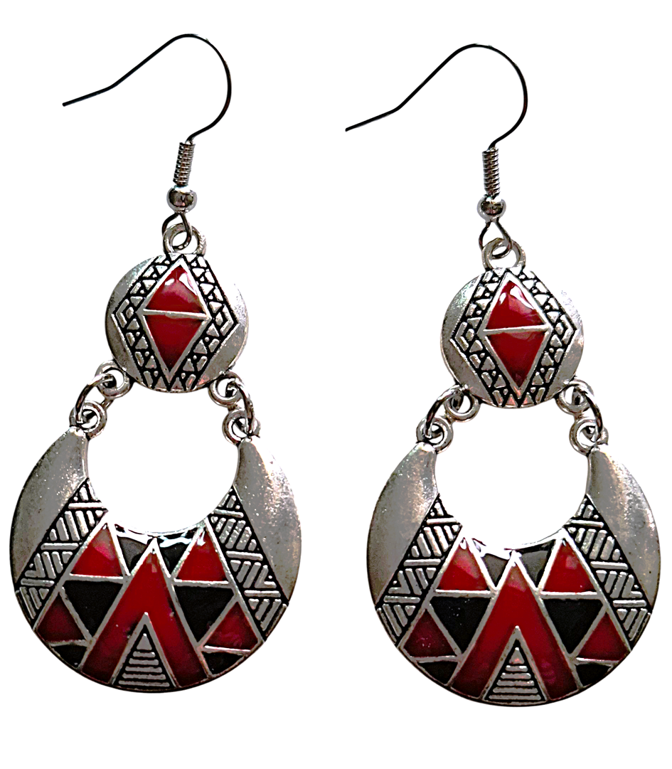 Berberyjskie kolczyki – srebro, czerwień i czerń Maroka.