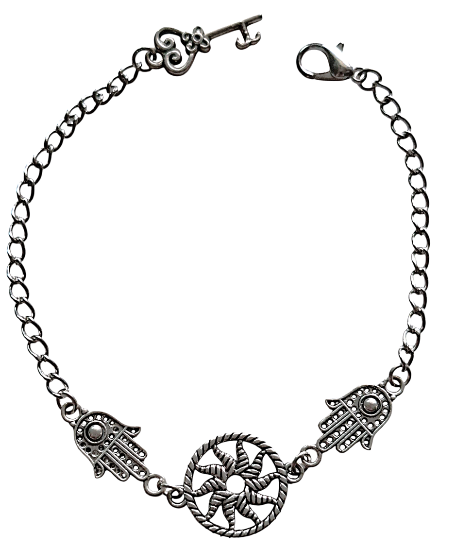 Srebrna nić oplata nadgarstek jak zaklęcie, delikatna, lecz silna — jak kobieta pustyni.