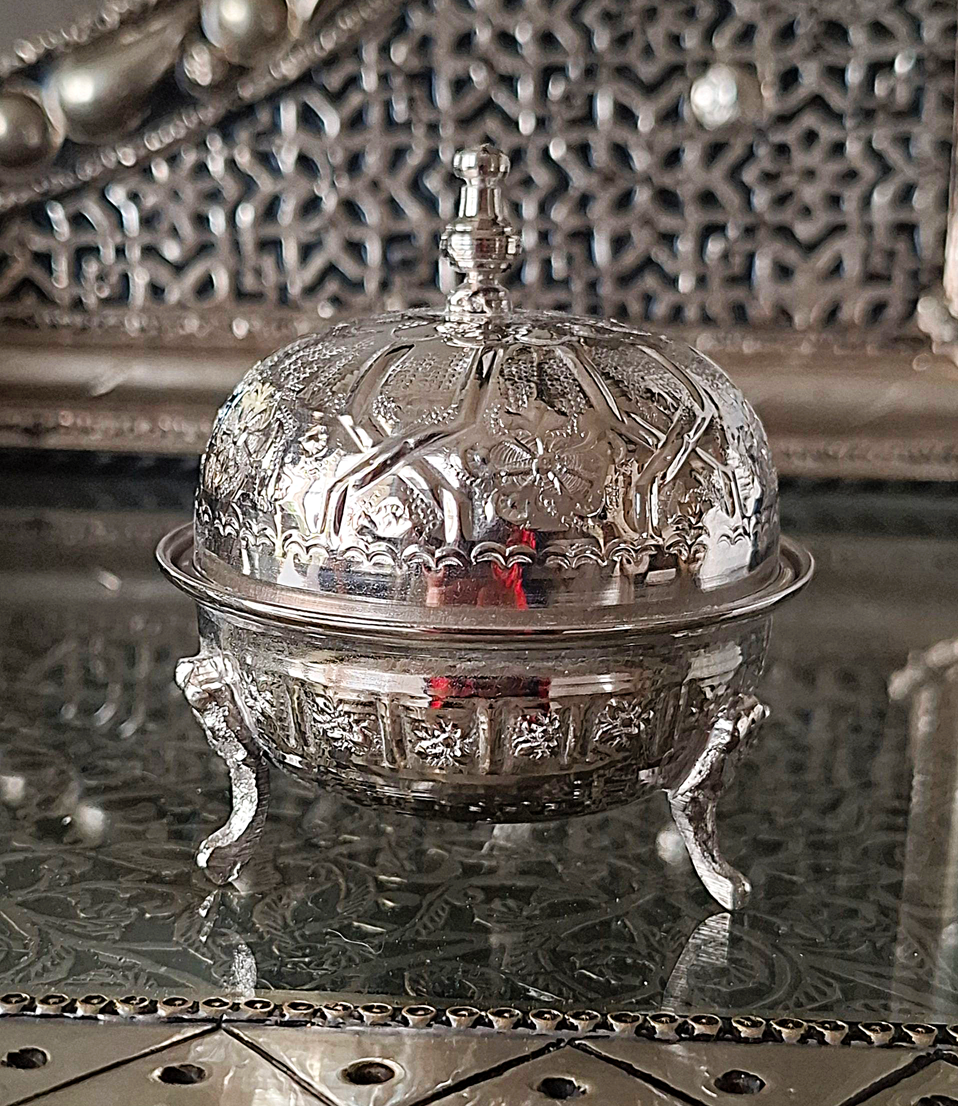 Niewielka, a jednocześnie pełna wyrafinowanej obecności – ta orientalna kadzielnica z Maroka to prawdziwa perełka dla miłośników luksusu ukrytego w detalu.