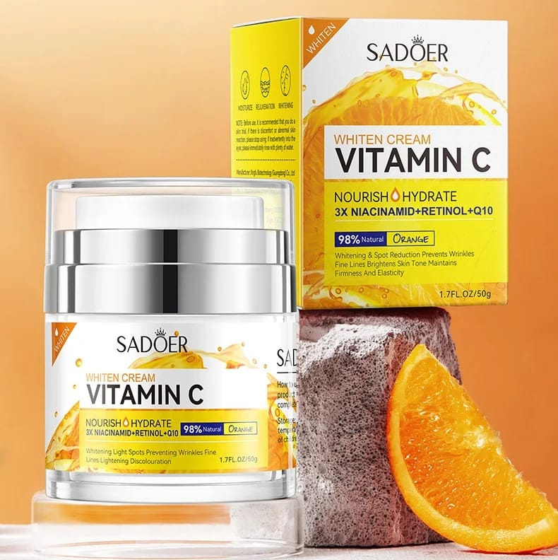 Witamina C (kwas askorbinowy) – działa jako silny przeciwutleniacz, rozjaśnia przebarwienia, ujednolica koloryt skóry i stymuluje produkcję kolagenu.