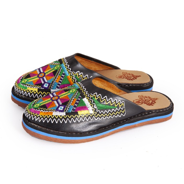 Każda para to prawdziwe dzieło sztuki – ozdobiona barwnym haftem w geometryczne, tradycyjne wzory inspirowane kulturą Amazigh (Berberów).
