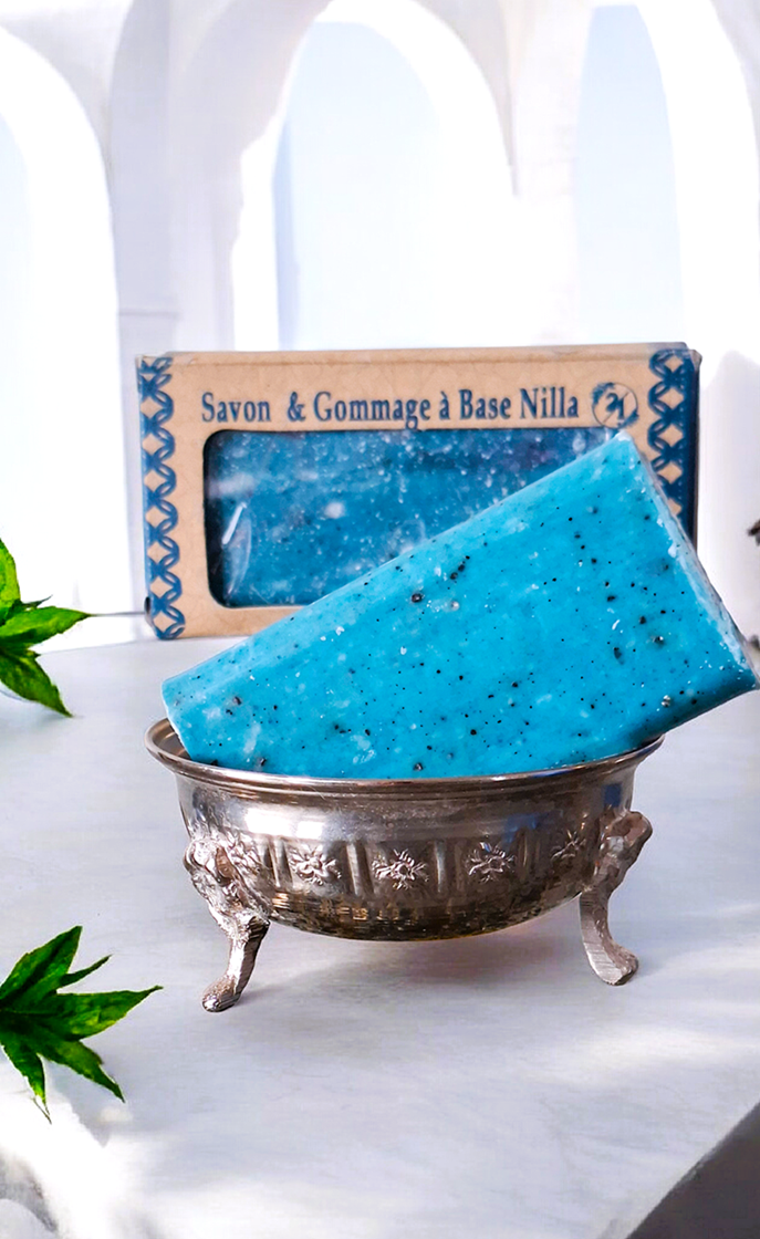 Nila pochodzi od niebieskiego ghassoul znalezionego na saharze, który ma sproszkowaną postać .