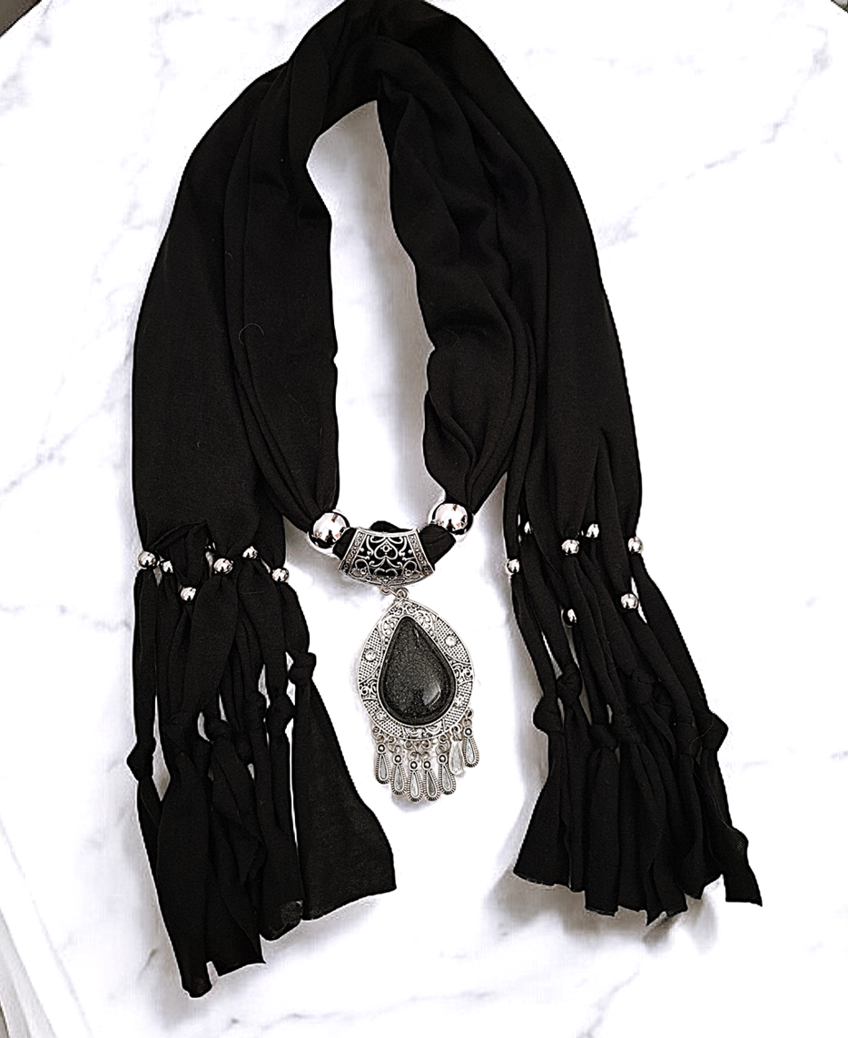 Niczym nocne niebo spływające na ramiona, ta miękka, cudownie otulająca, bawełniana czarna chusta otula miękkim, zwiewnym woalem.