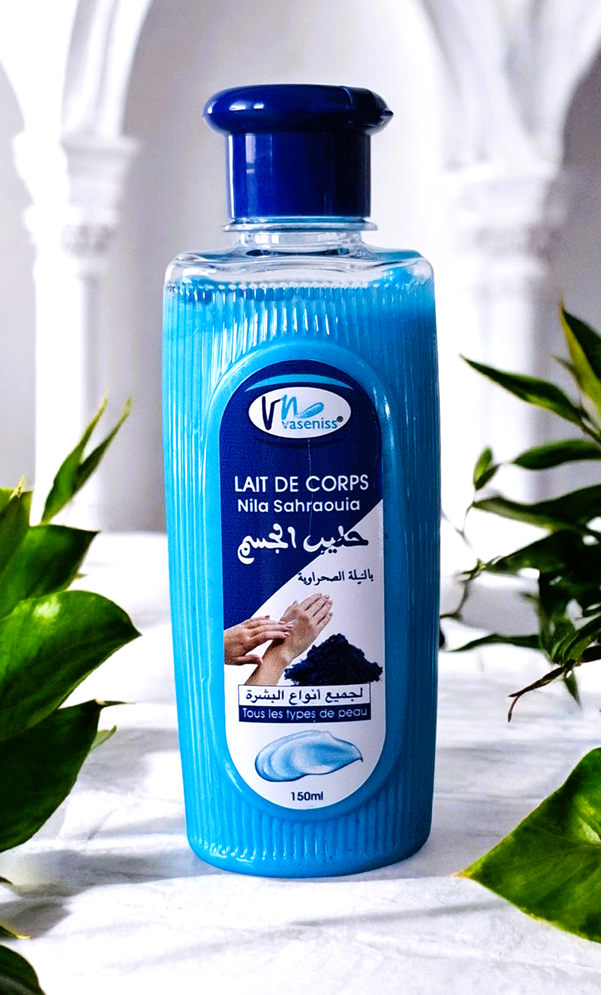 Luksusowy, marokański balsam do ciała stworzony na bazie proszku Nila – naturalnego niebieskiego pigmentu cenionego w tradycji marokańskiej za właściwości rozjaśniające, wygładzające i wyrównujące koloryt skóry.